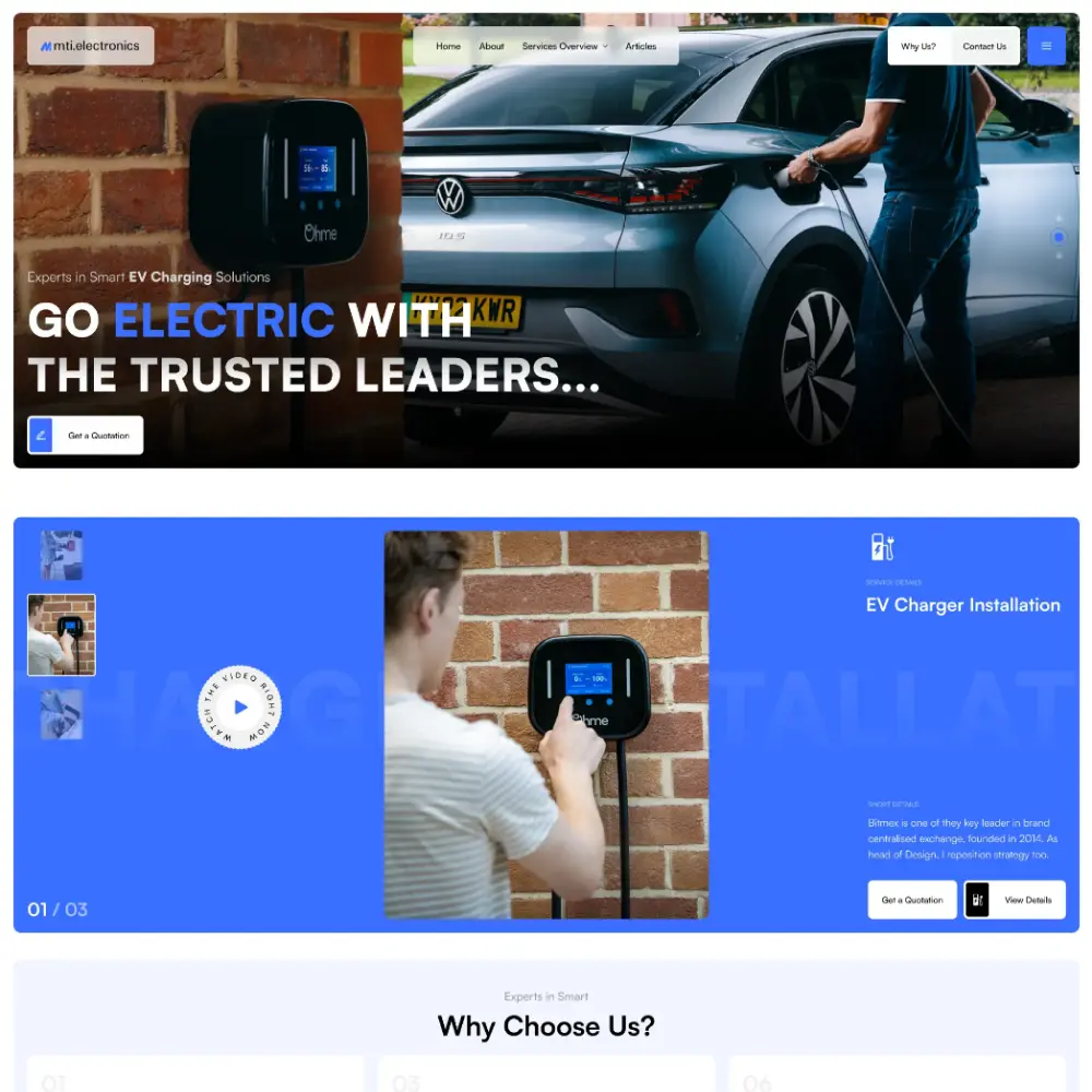 A complete agency portfolio platform built for Electro EV to showcase their services, blog content, and product offerings.