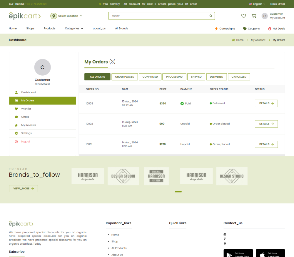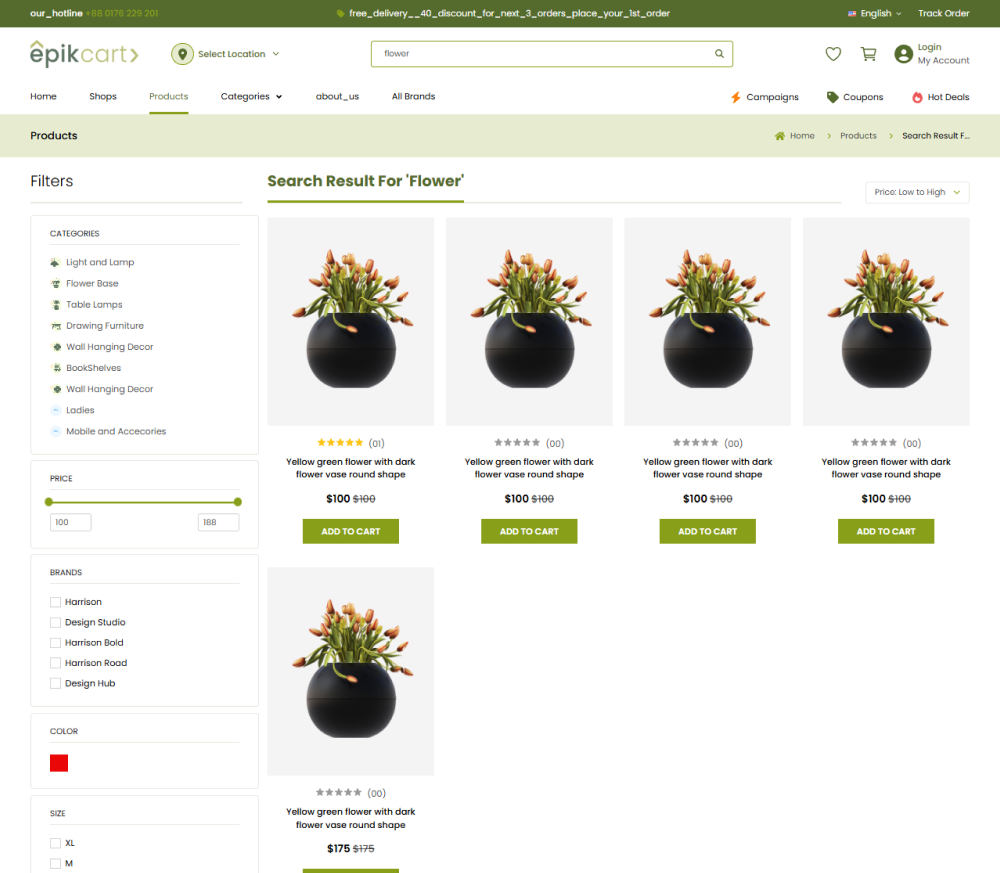 Epikcart is a feature-rich, scalable e-commerce platform tailored for large businesses. It features dynamic product filtering, multi-language support with RTL, advanced inventory management, order tracking, and refund systems, offering a comprehensive solution for multi-vendor operations.